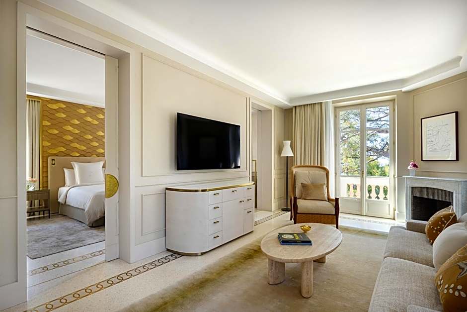 Located on the ground level of the Terrasses du Cap, this suite offers a living area and a bedroom with French doors opening onto a terrace with a private pool overlooking the pine grove. It is equipped with a walk-in wardrobe and an ensuite marble bathroom with bath and shower.
